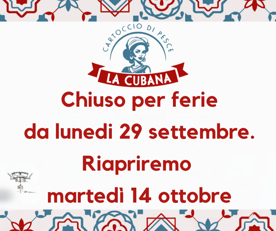 Avvisiamo la gentile clientela che la Trattoria Cubana è chiusa per ferie da lunedì 29 settembre e riapriremo martedì 14 ottobre